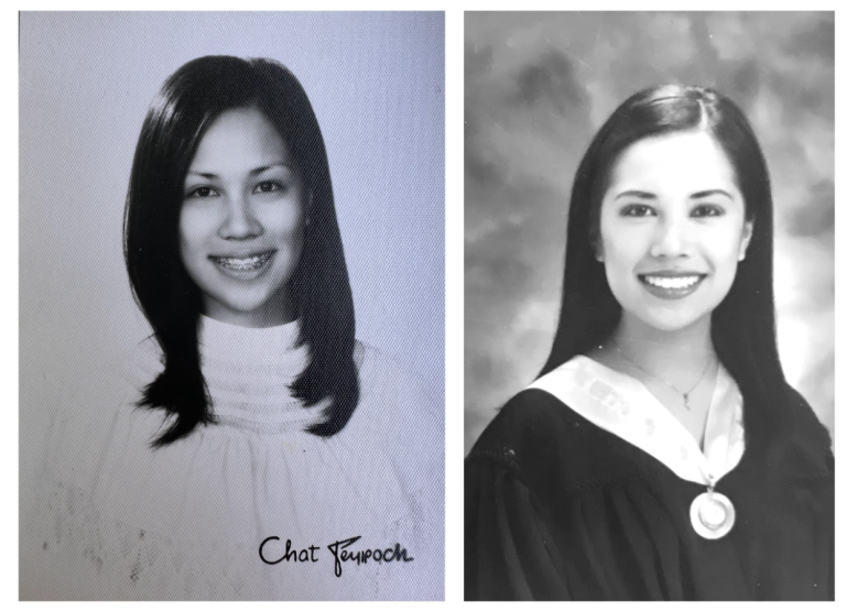 Side by side educational milestones. Keesa’s High School and College Graduation Photos