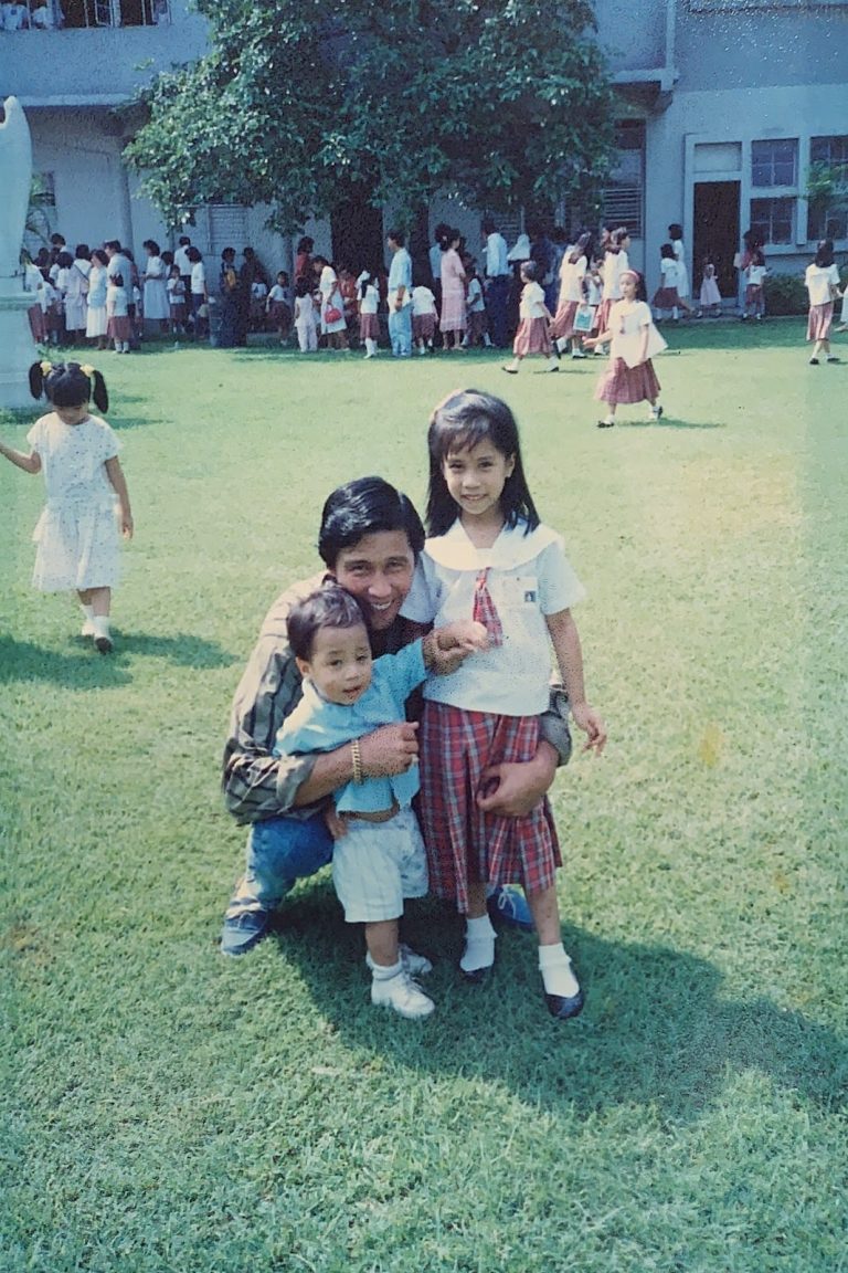 Keesa’s AC Childhood Photo in the AC San Lorenzo Grade School Grounds. With dad, Pablo Ocampo, and brother Carlo.