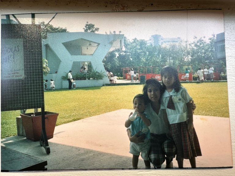 Keesa’s AC Childhood Photo in the AC San Lorenzo Grade School Grounds. With mom, Anna Lukban, and brother Carlo.